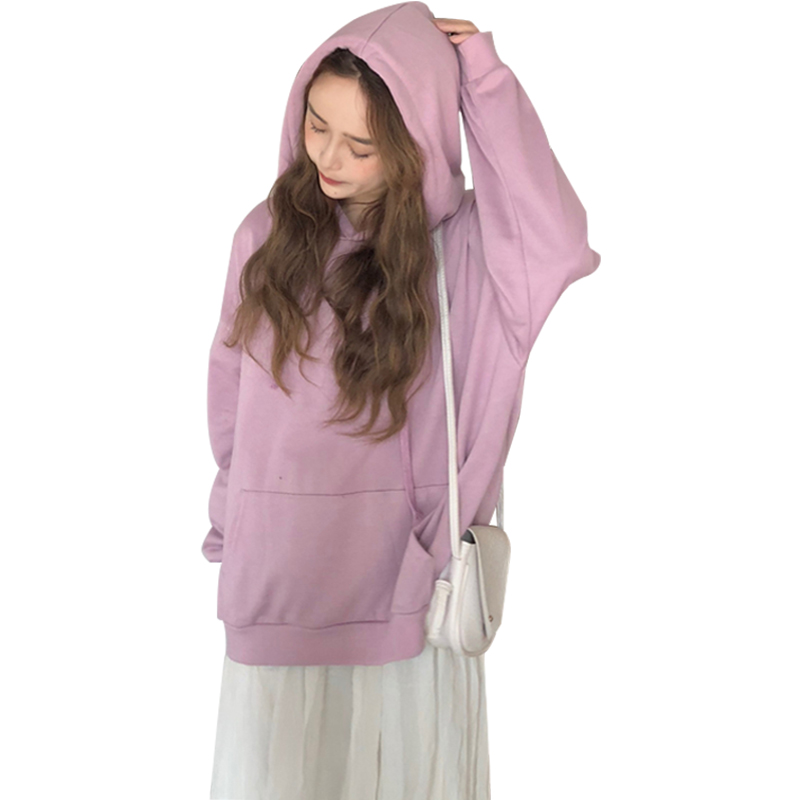 純灰色衛衣女秋2018新款長袖藍色韓版慵懶風上衣紫色寬松連帽外套