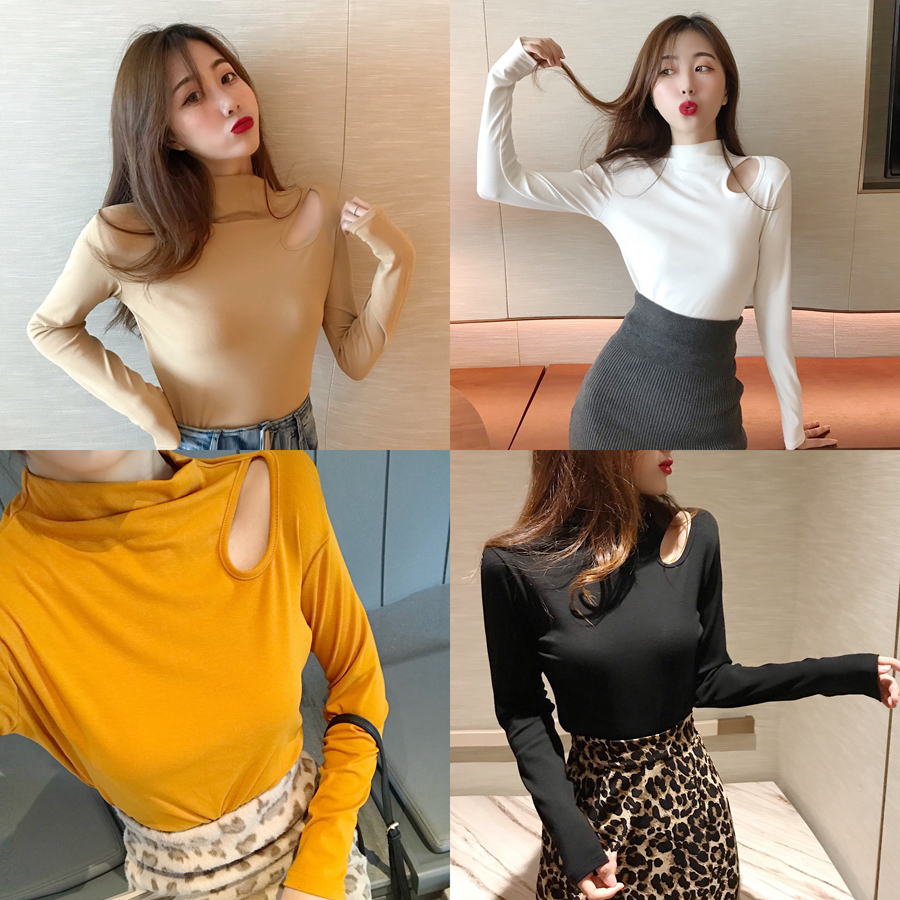 2018新款復古氣質時尚上衣女百搭修身長袖chic小高領打底衫T恤潮