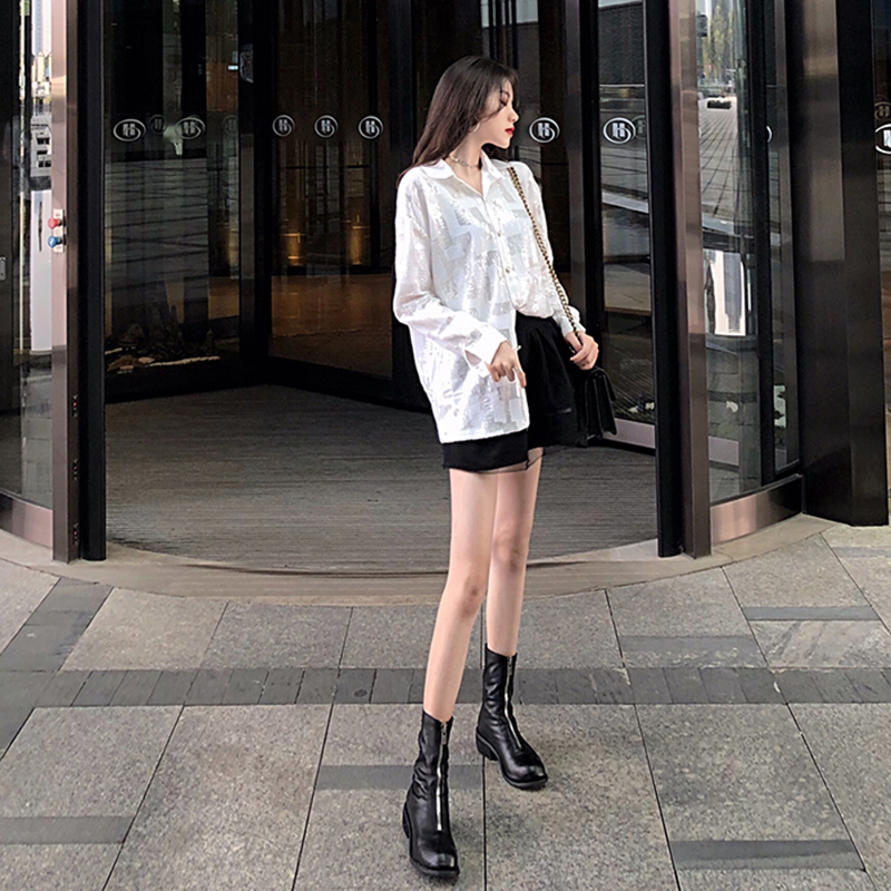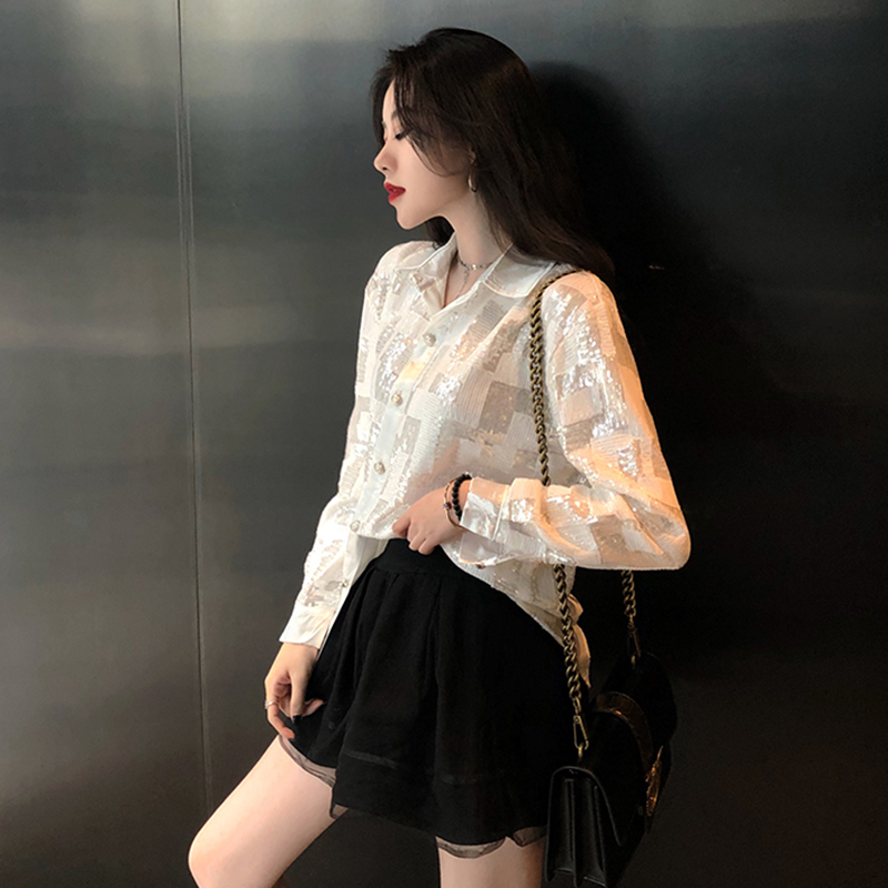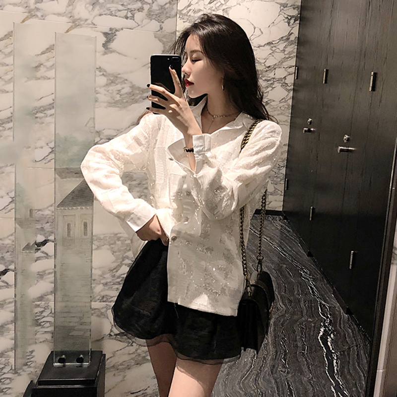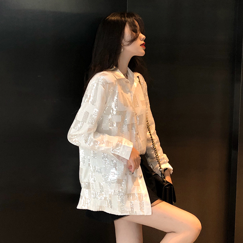 氣質chic格子長袖襯衣女秋冬裝2018新款韓版時尚閃閃寬松襯衫上衣