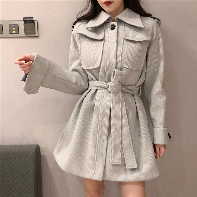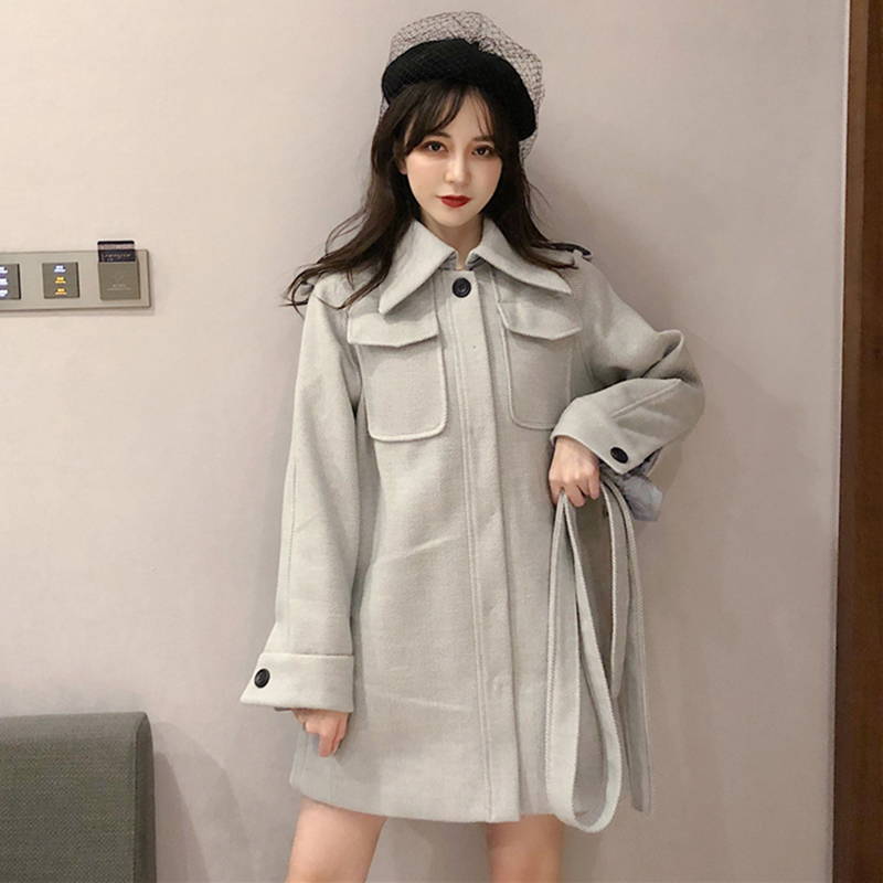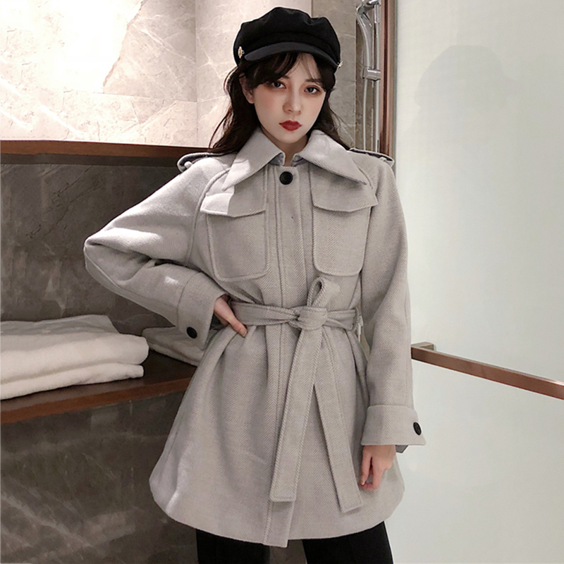 chic赫本毛呢外套女秋冬裝2018新款中長款收腰單排扣流行呢子大衣