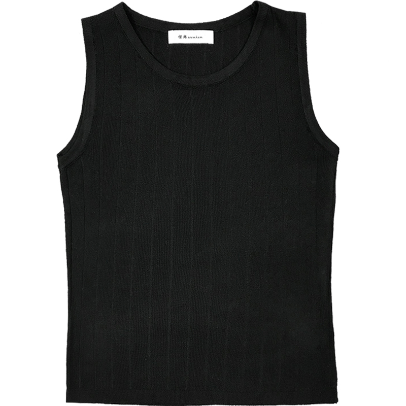 / 夏季新款女裝坑條圓領純色修身顯瘦學生百搭無袖打底針織背心女