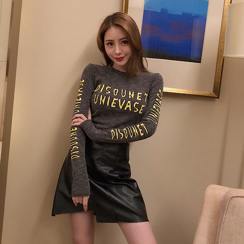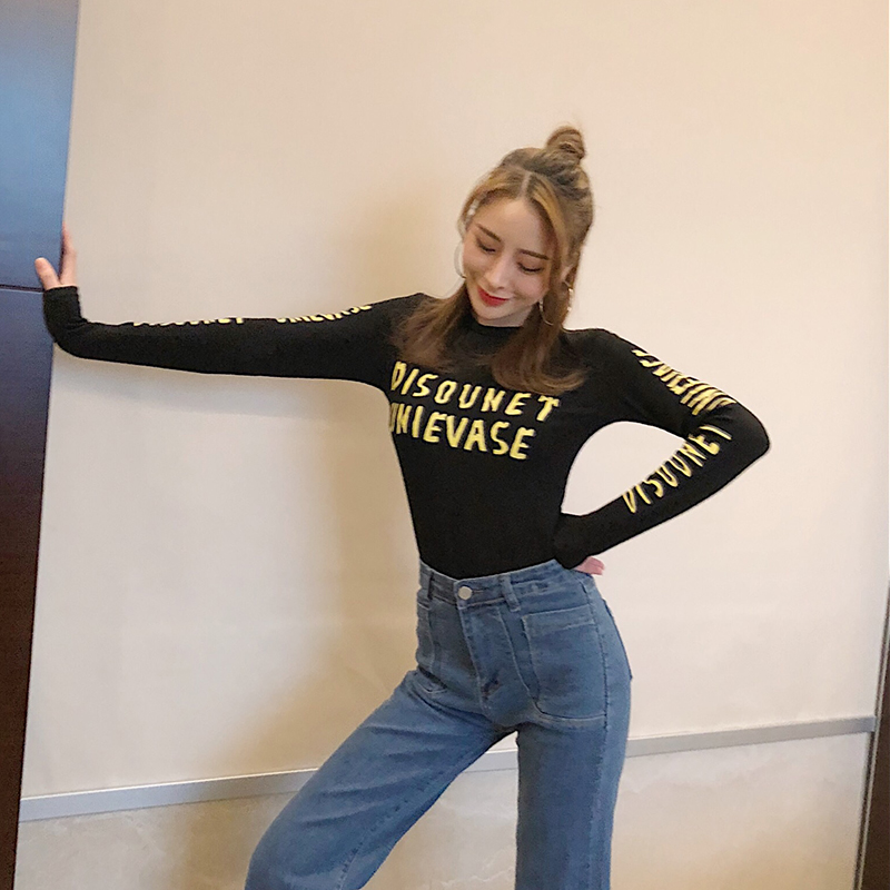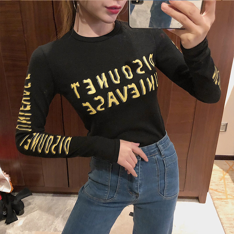 chic早秋2018新款韓版百搭修身顯瘦圓領長袖上衣女裝復古打底T恤