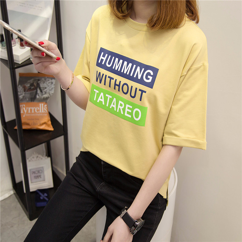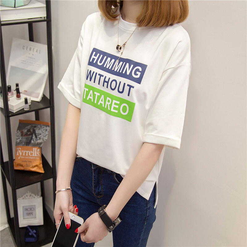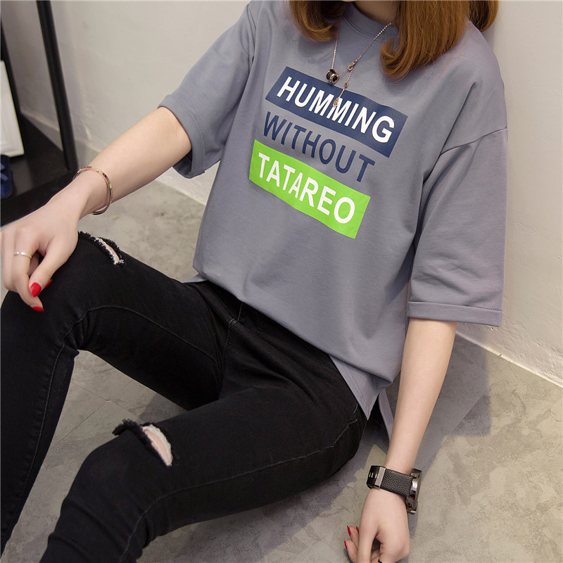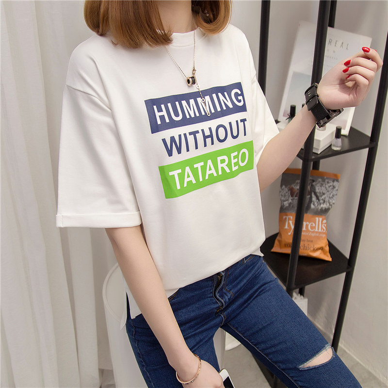 夏裝新款女打底衫長款時尚韓版學生寬松上衣百搭短袖t恤女