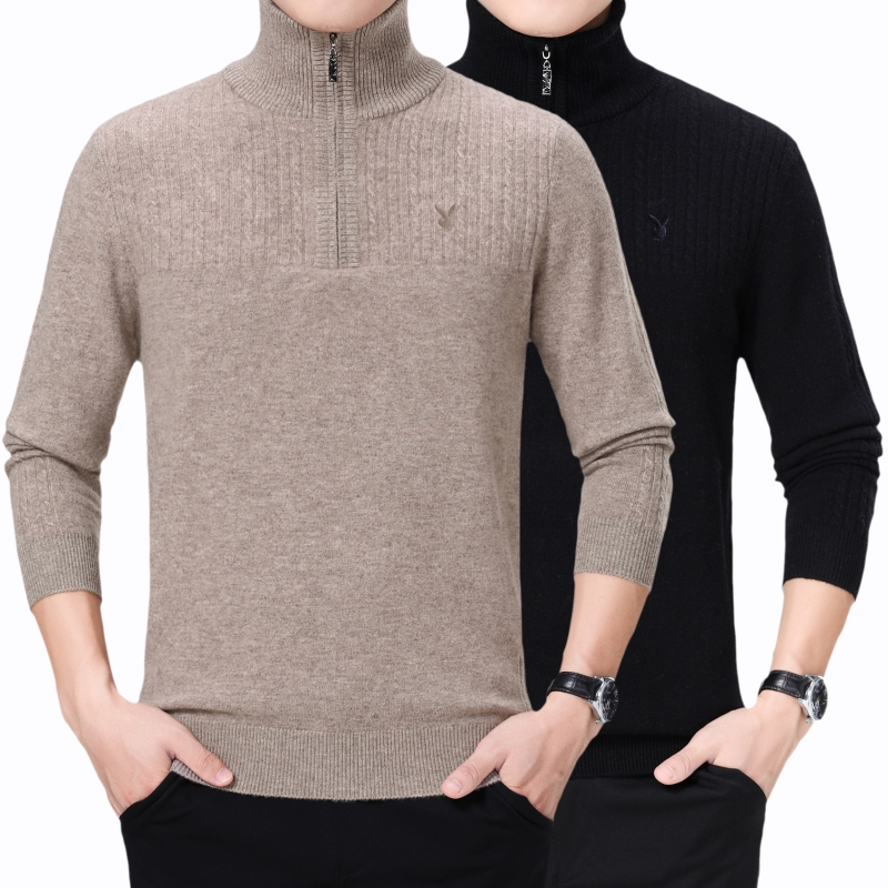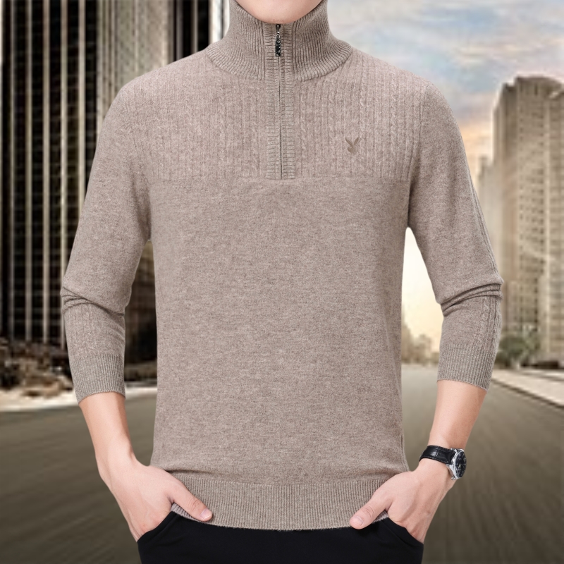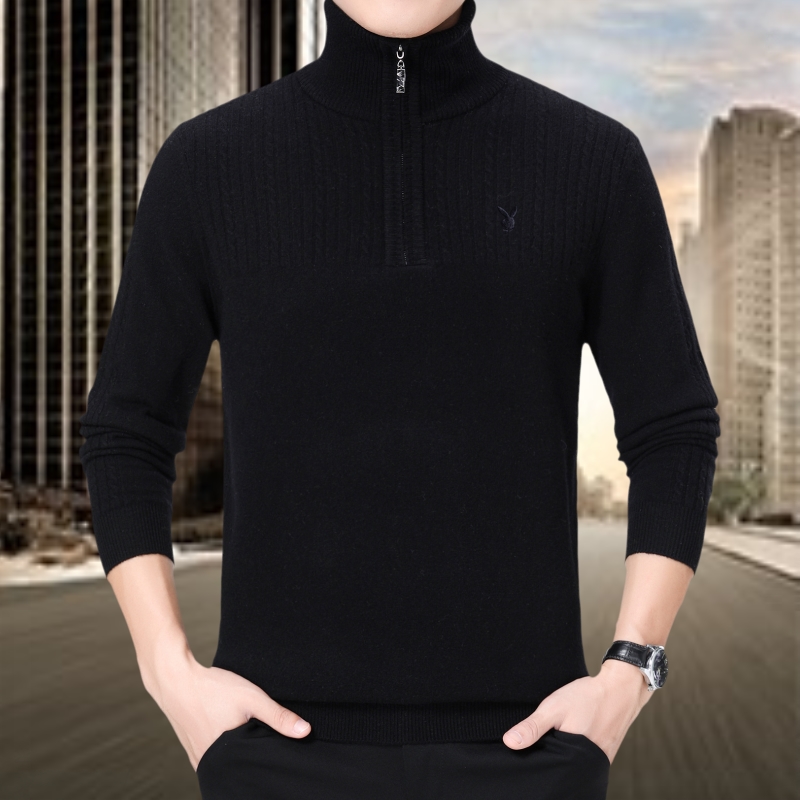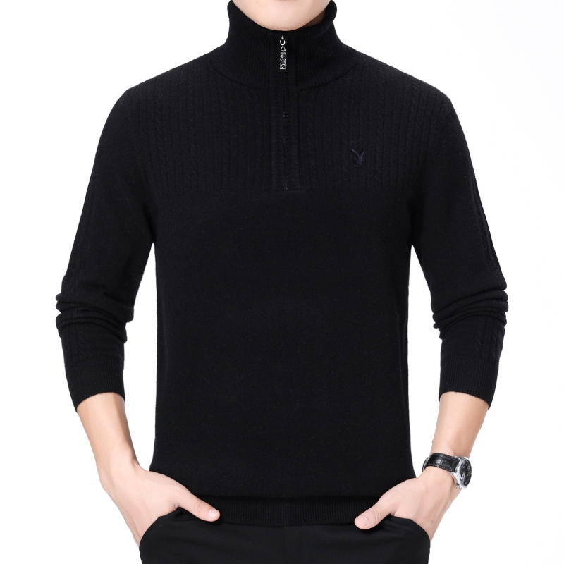冬裝花花公子正品中年男士純羊絨毛衣休閑男裝拉鏈高領加厚羊毛衫