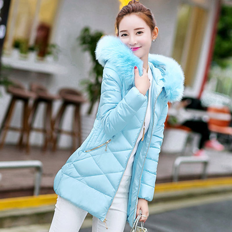 新款時尚韓版棉衣女中長款修身顯瘦大碼學生裝大毛領連帽外套