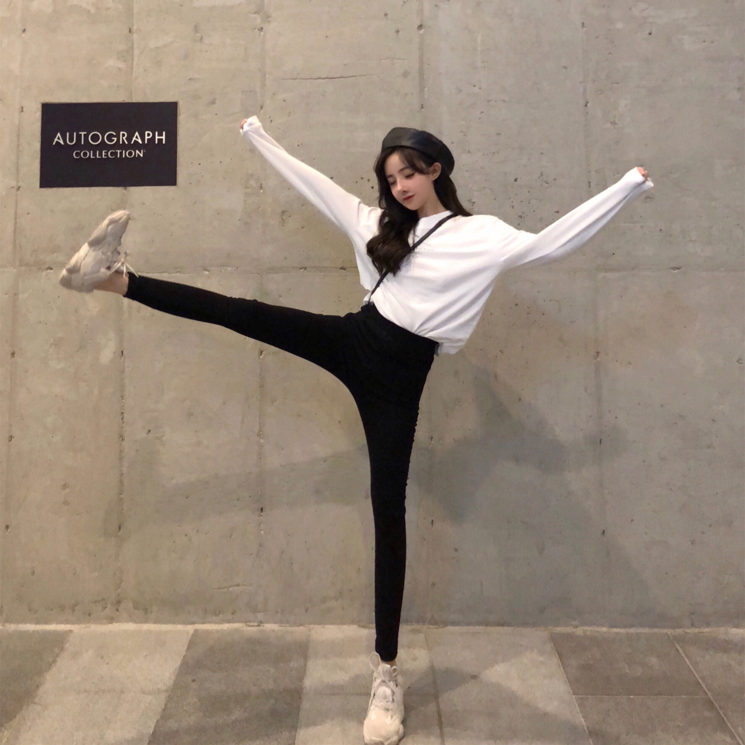 2018新款韓版軟妹針織打底褲女學生灰色長褲修身外穿彈力褲小腳褲
