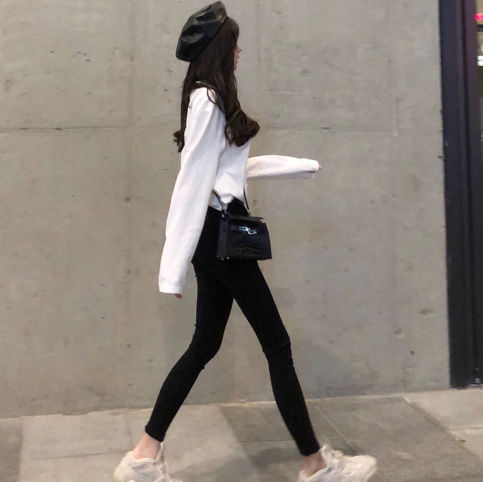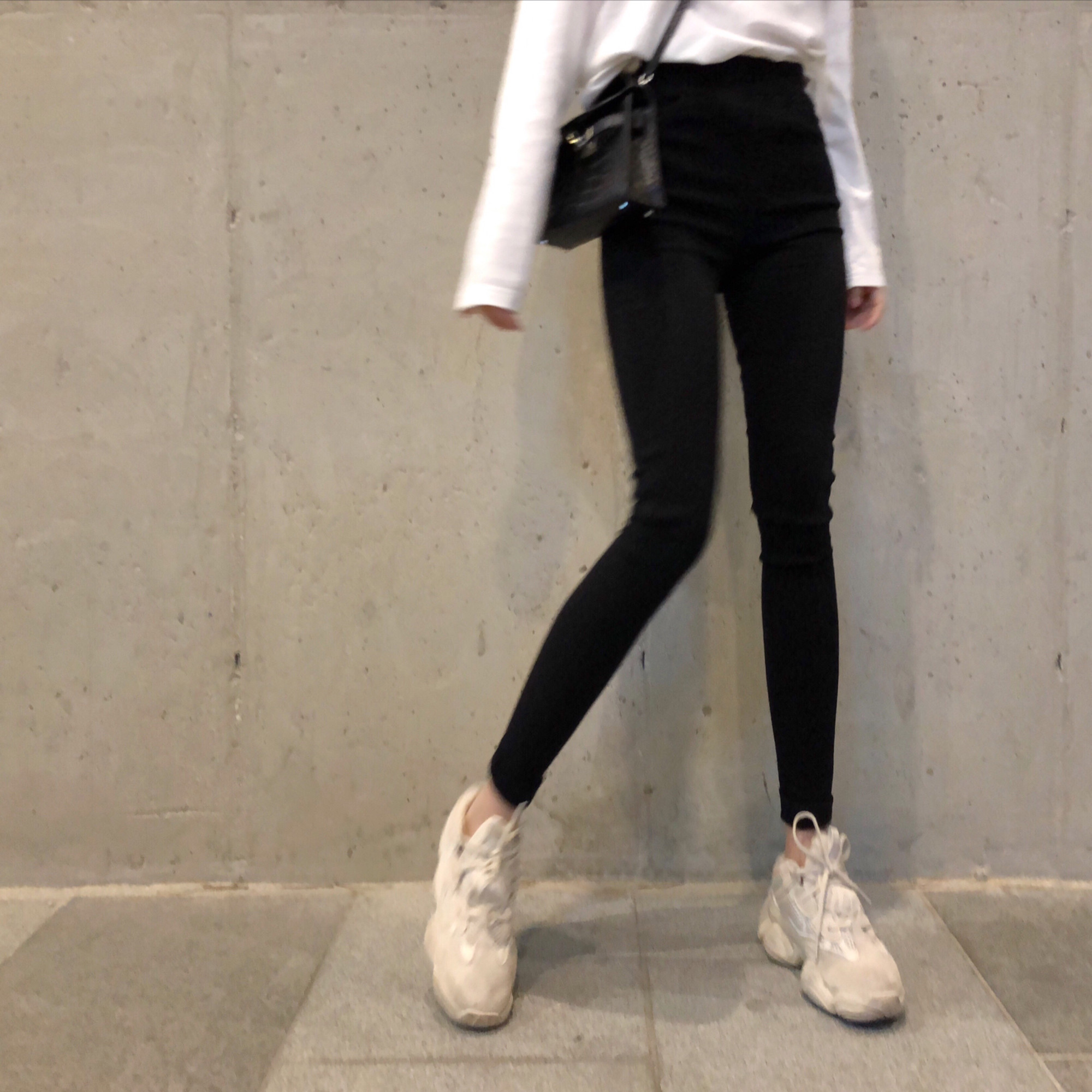 秋裝女2018新款百搭不抽絲超大彈力高腰顯瘦鉛筆小腳褲黑色休閑褲