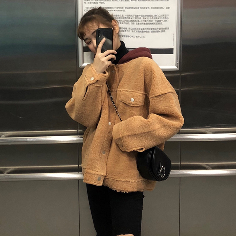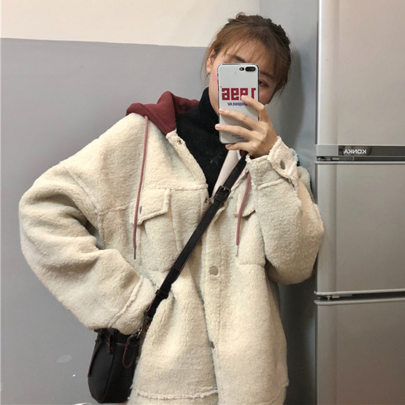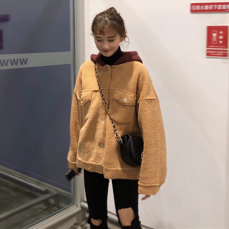 / 羊羔毛連帽棉衣服女秋冬裝2018新款學生韓版慵懶寬松休閑長袖外套