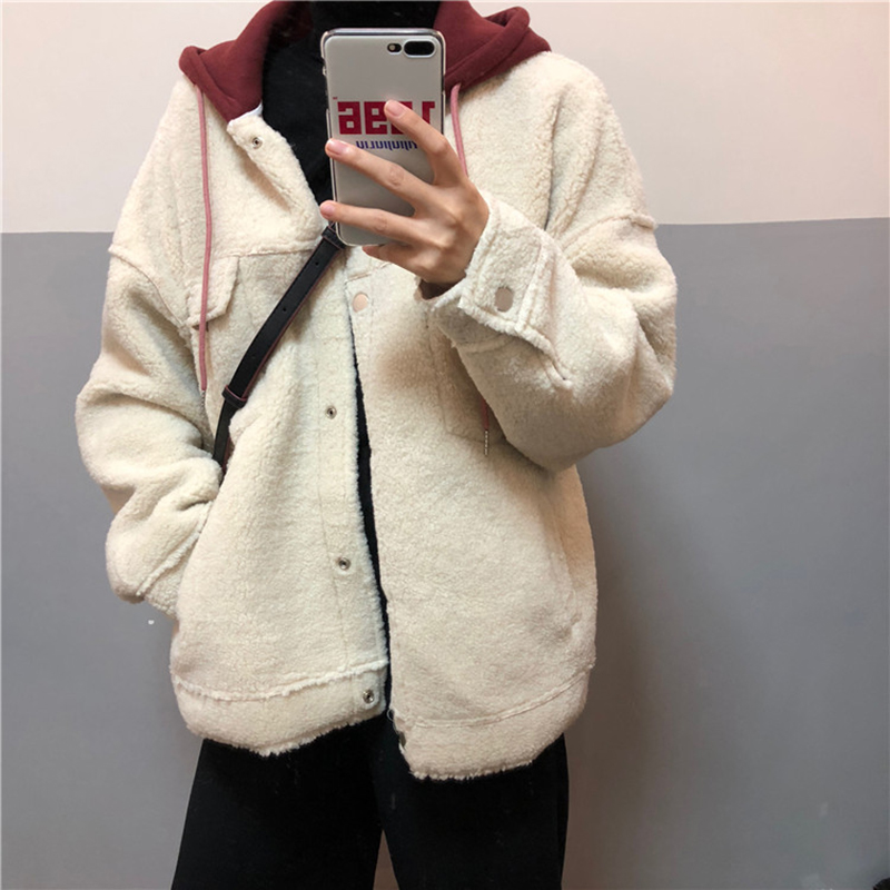 羊羔毛連帽棉衣服女秋冬裝2018新款學生韓版慵懶寬松休閑長袖外套