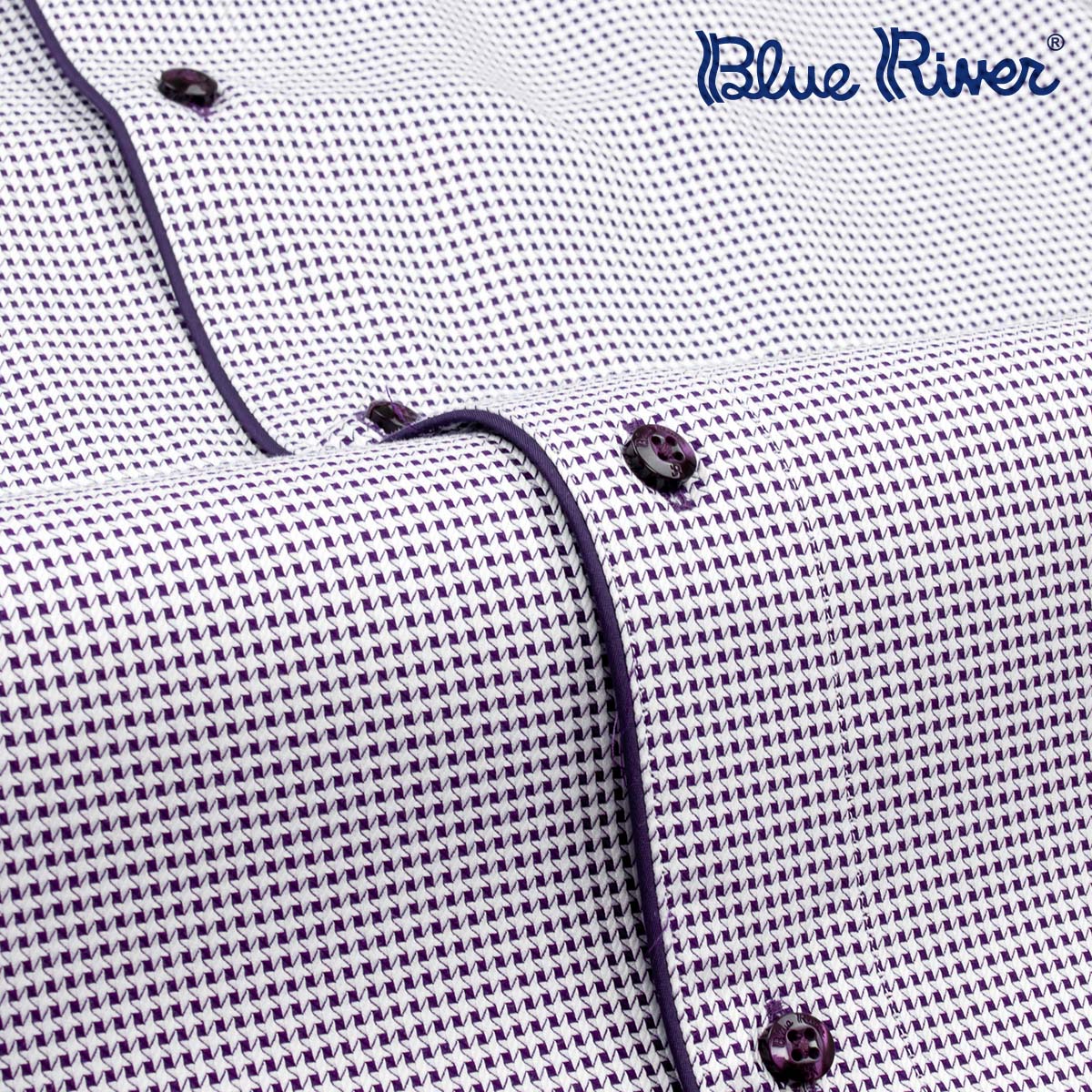 藍河新款 溫莎領高支棉長袖襯衫男士灰色細格子商務休閑襯衣