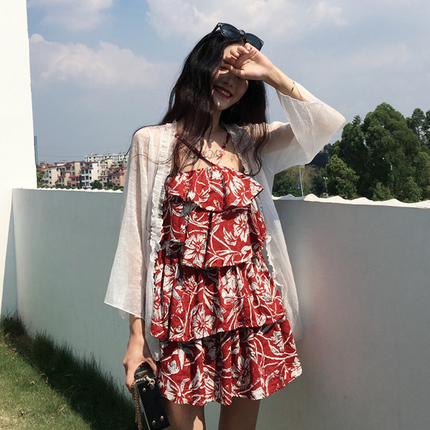 小清新2018新款韓版連衣裙女復古chic秋季寬松荷葉邊短裙吊帶裙潮