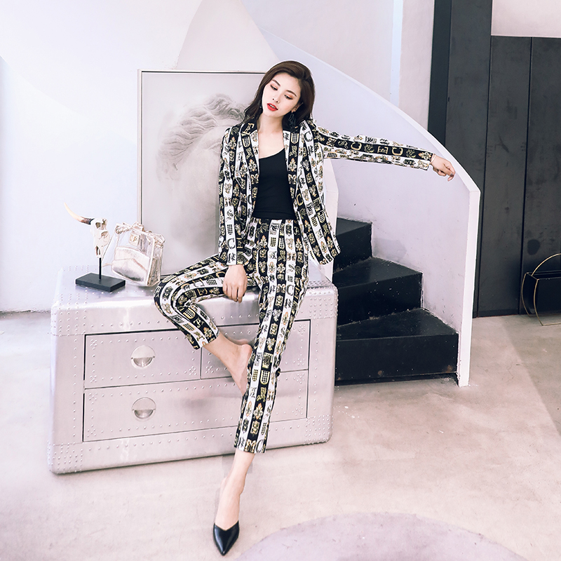 / 歐貨時髦套裝女2018秋季新款俏皮港味休閑西裝九分小腳褲兩件套潮