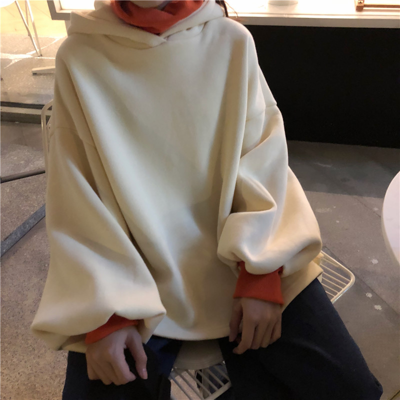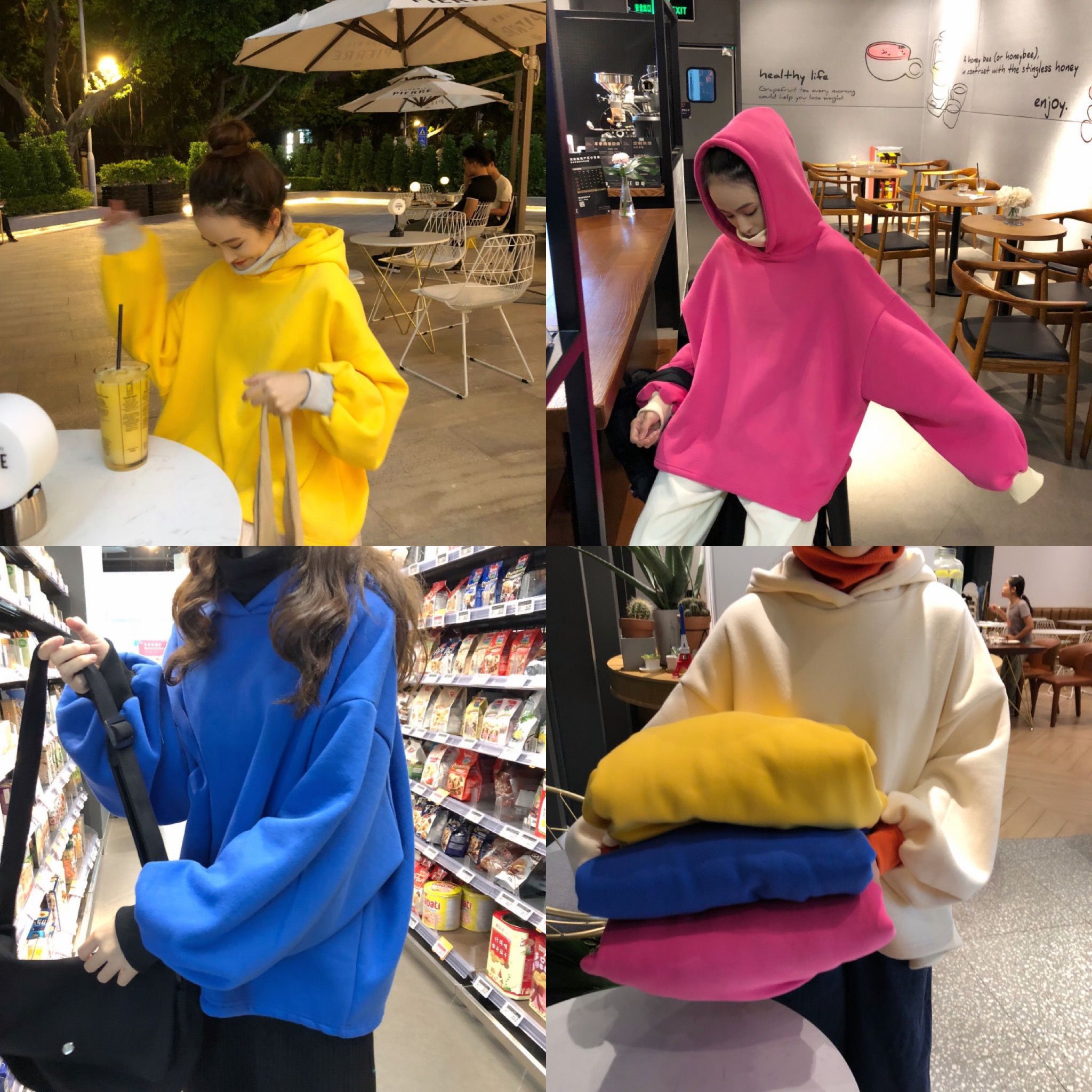 / 秋冬女裝韓版寬松撞色拼接高領加絨加厚連帽套頭超火衛衣上衣外套