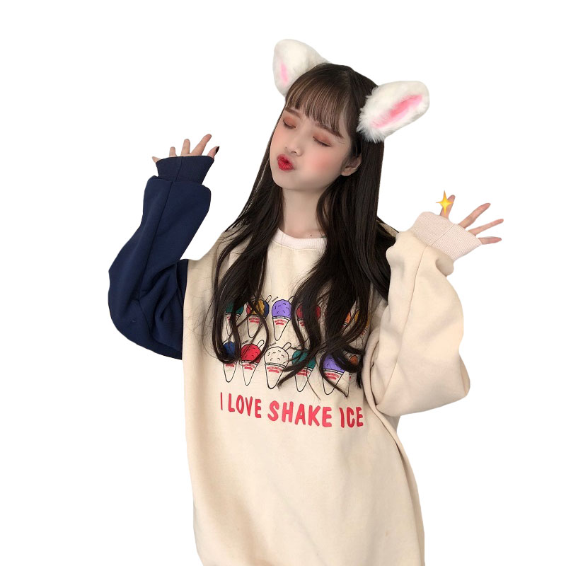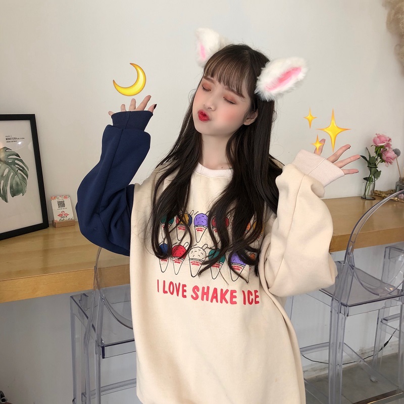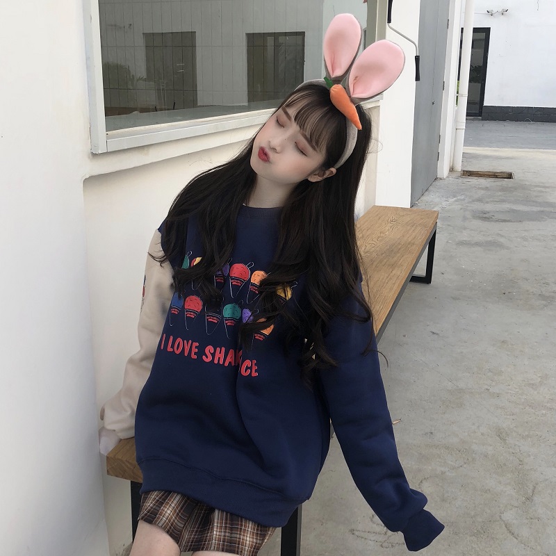/ 2018新款秋冬韓版原宿風卡通拼色寬松加厚套頭超火衛衣上衣外套女
