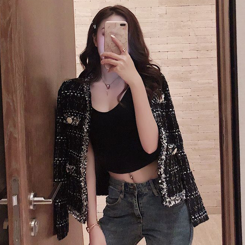 秋冬女裝2018新款學生復古流蘇毛呢短外套粗花呢格子開衫時尚上衣