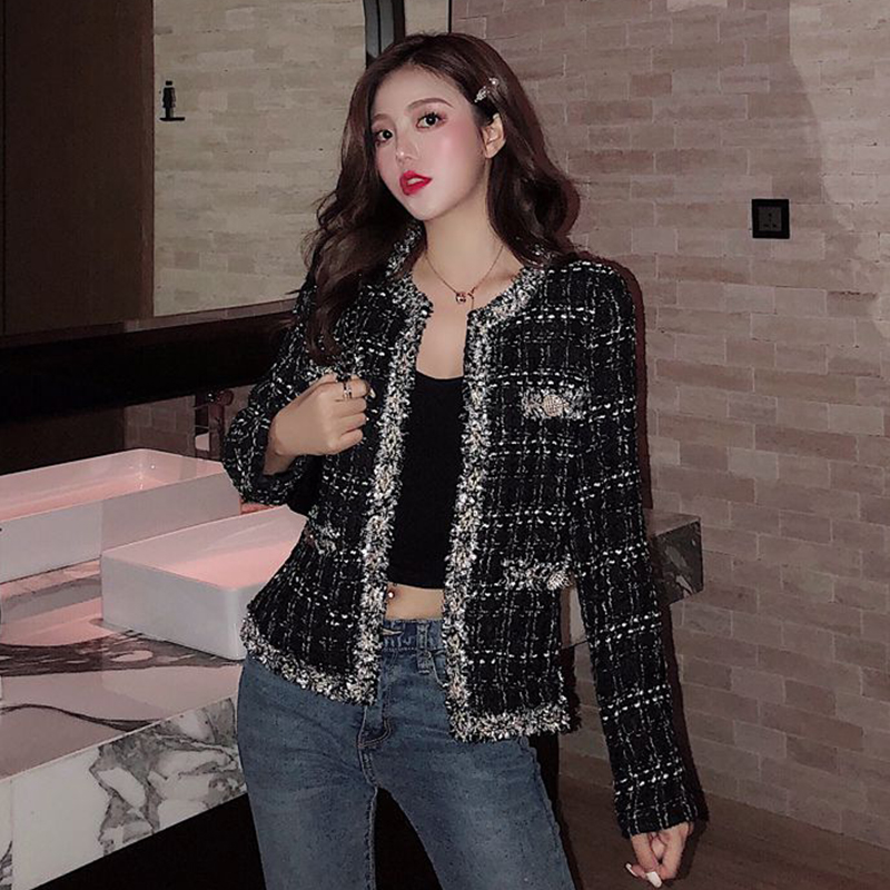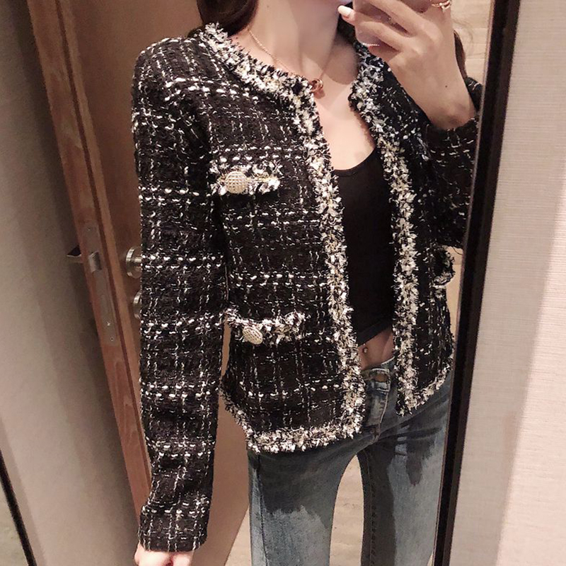 / 秋冬女裝2018新款學生復古流蘇毛呢短外套粗花呢格子開衫時尚上衣