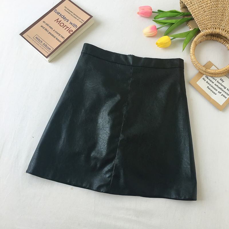 韓版高腰顯瘦時尚PU皮半身裙子女秋冬裝新款學生復古黑色A字短裙