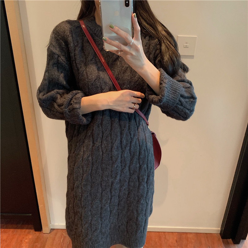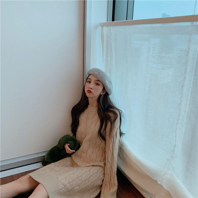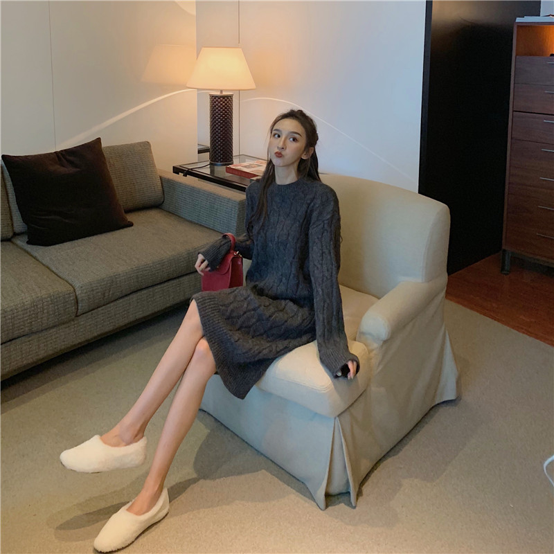 chic秋冬針織衫韓版慵懶百搭寬松質感顯瘦厚實毛衣中長款連衣裙女