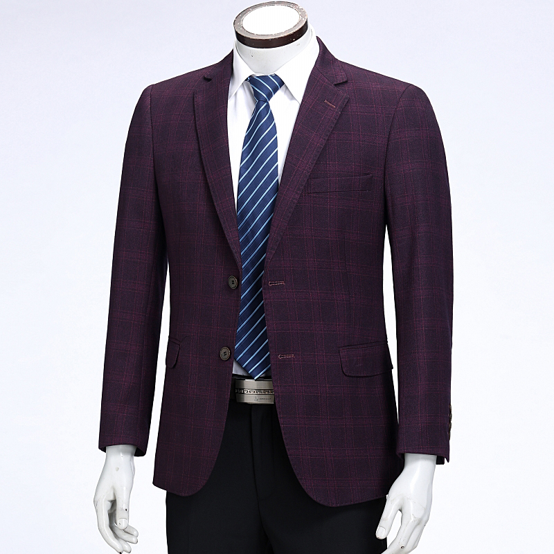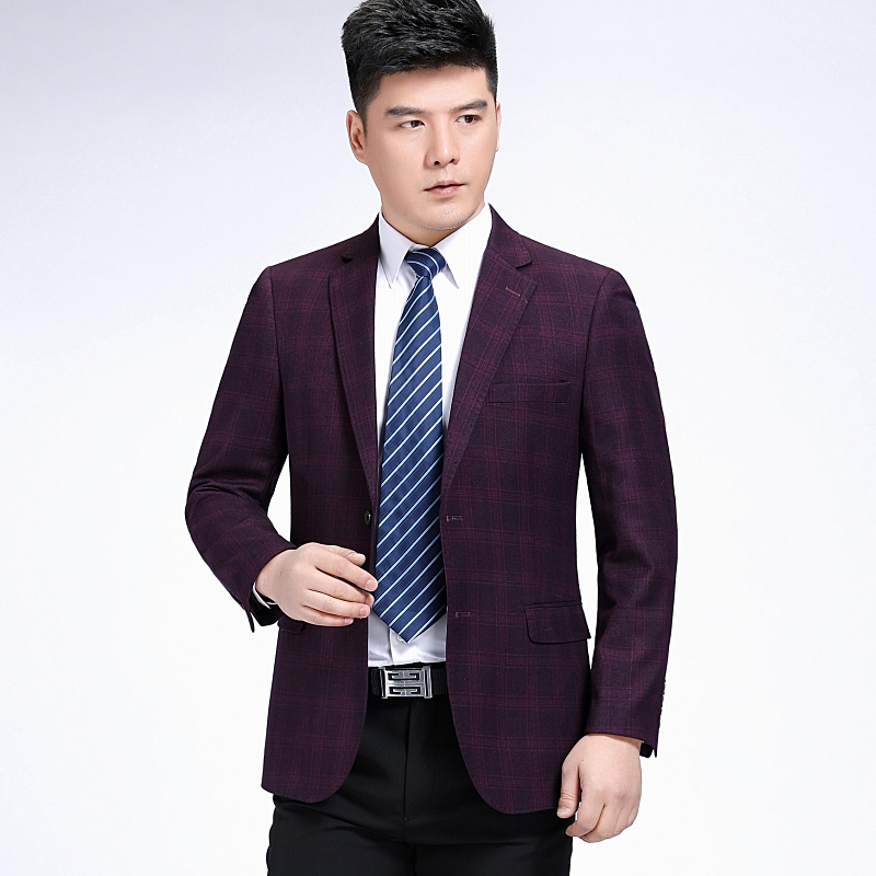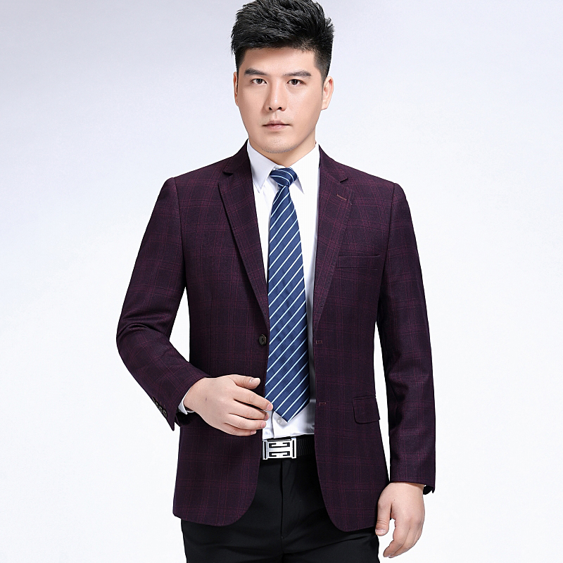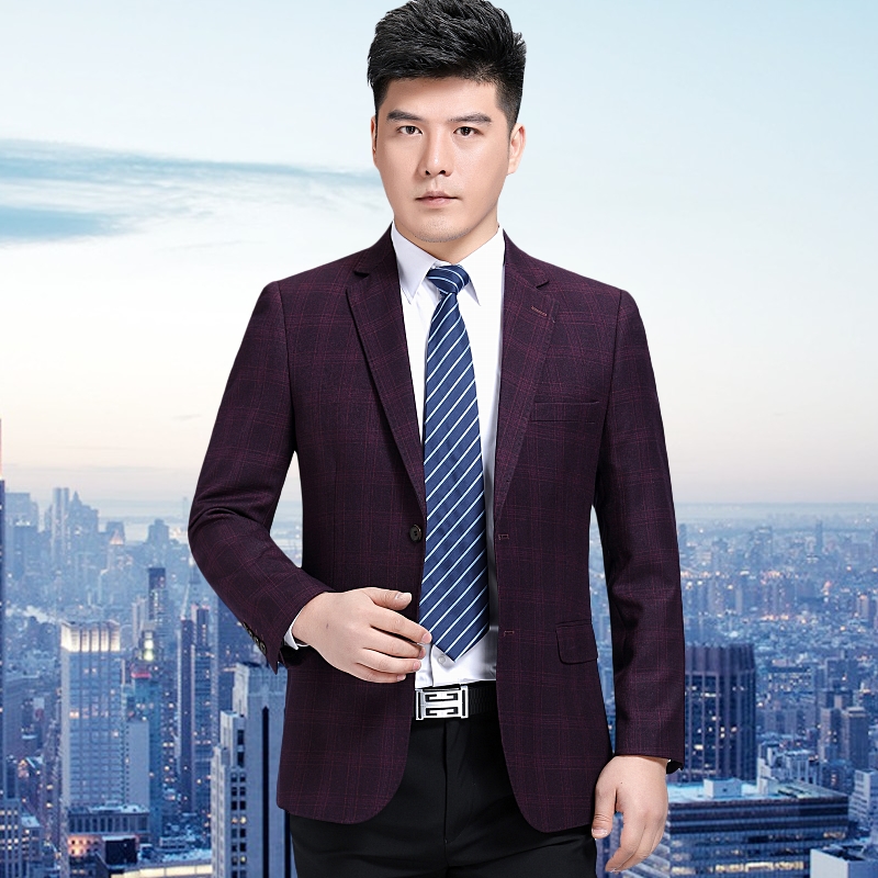 / 2018春裝新款品牌中年男士免燙西服商務男裝羊毛格子單件西裝外套