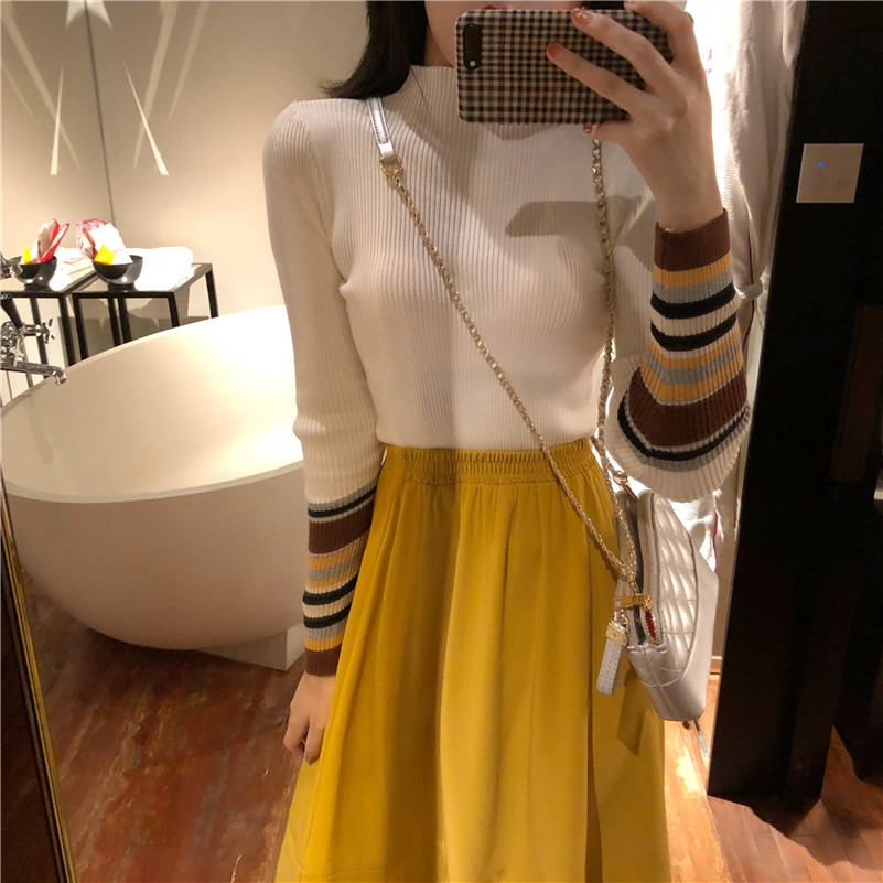 / 半高領毛衣女加厚秋冬新款短款修身彈力顯瘦百搭套頭針織打底衫潮