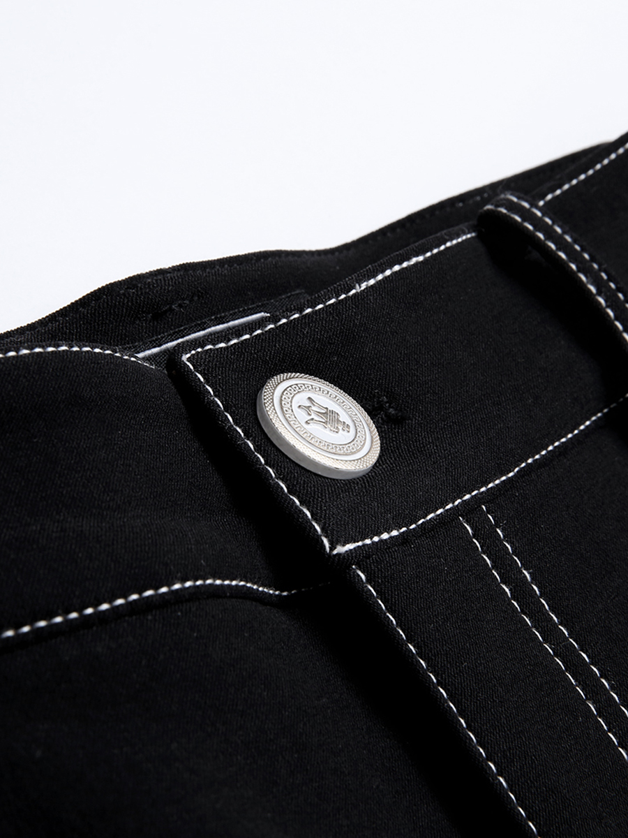 MG小象黑色緊身小腳褲女秋冬時尚高腰休閑鉛筆褲外穿打底九分褲子