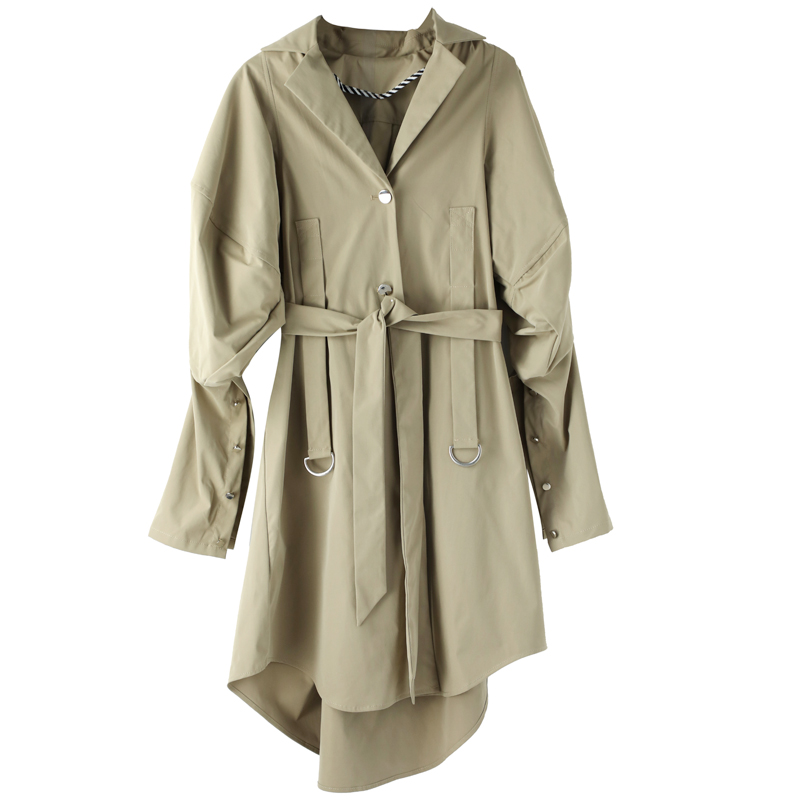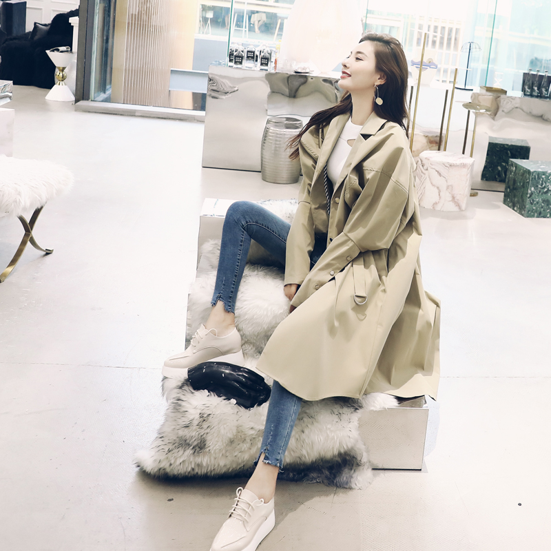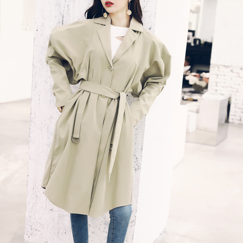 簡潔中長款風衣2018秋季新款慵懶bf港風收腰系帶寬松過膝外套大衣