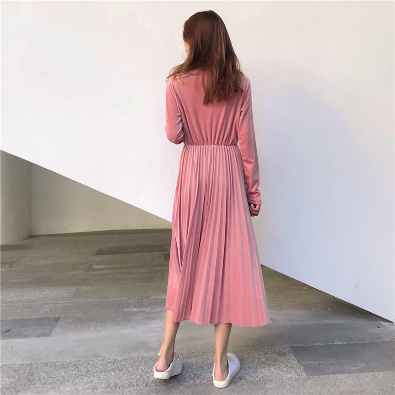 / 法式少女桔梗裙秋冬裝2018新款eeg中長裙時尚百搭收腰百褶連衣裙