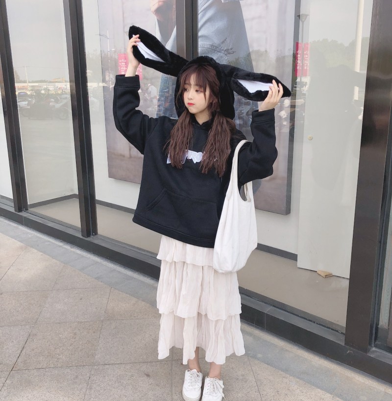 / 秋冬韓版中長款情侶閨蜜字母卡通寬松加絨加厚連帽衛衣上衣外套女