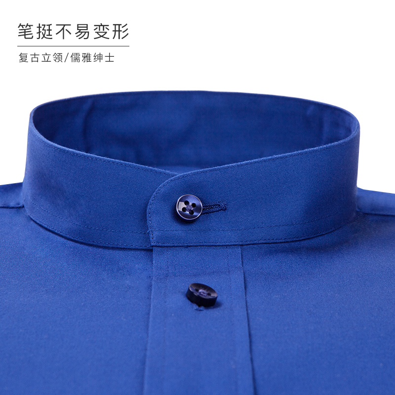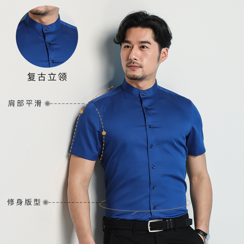 中華立領襯衫男短袖商務休閑修身純棉韓版潮流純色夏季襯衣中國風
