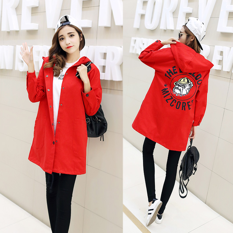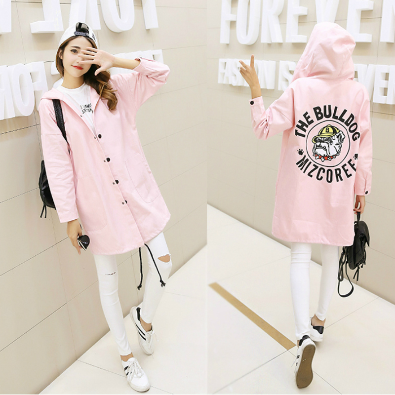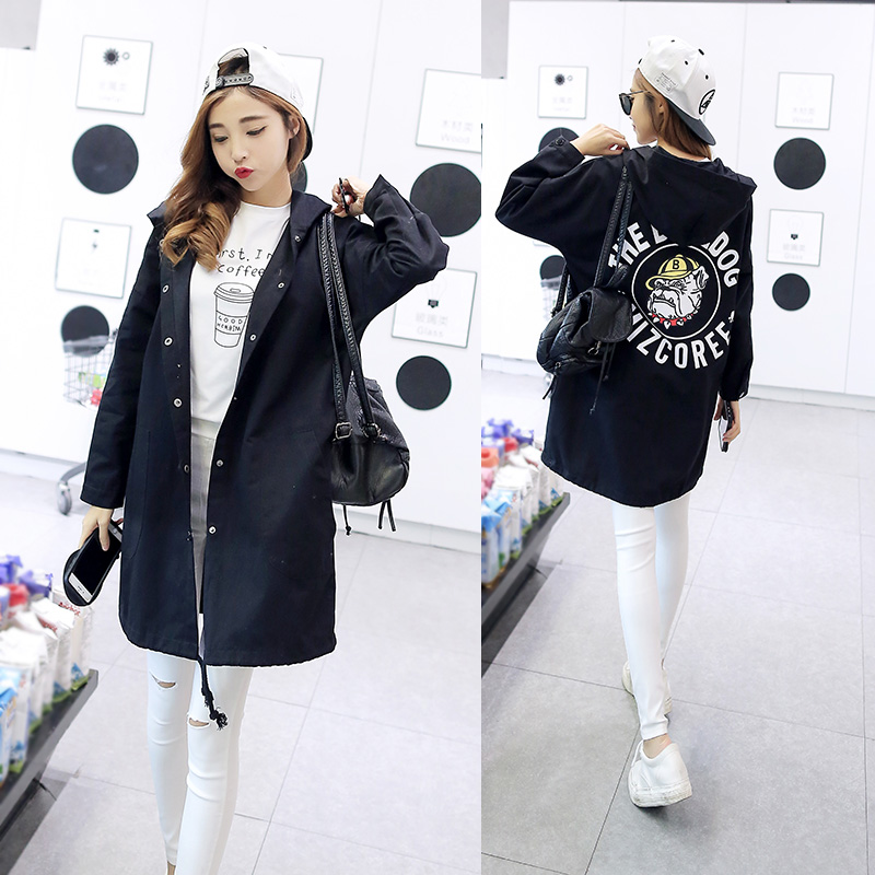 大碼春裝女胖mm外套新款韓版長袖學生bf寬松連帽中長款風衣潮