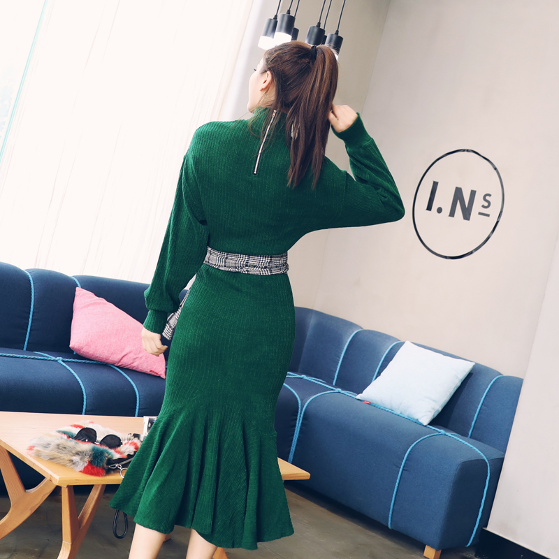 名媛針織連衣裙女長款秋冬韓版修身內搭復古網紅魚尾打底毛衣長裙