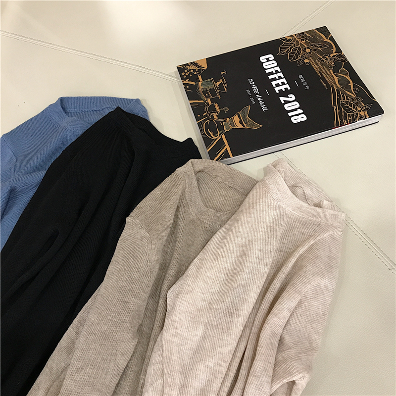 chic早秋針織衫包芯紗個性卷邊針織衫半高領套頭打底衫毛衣女~6色