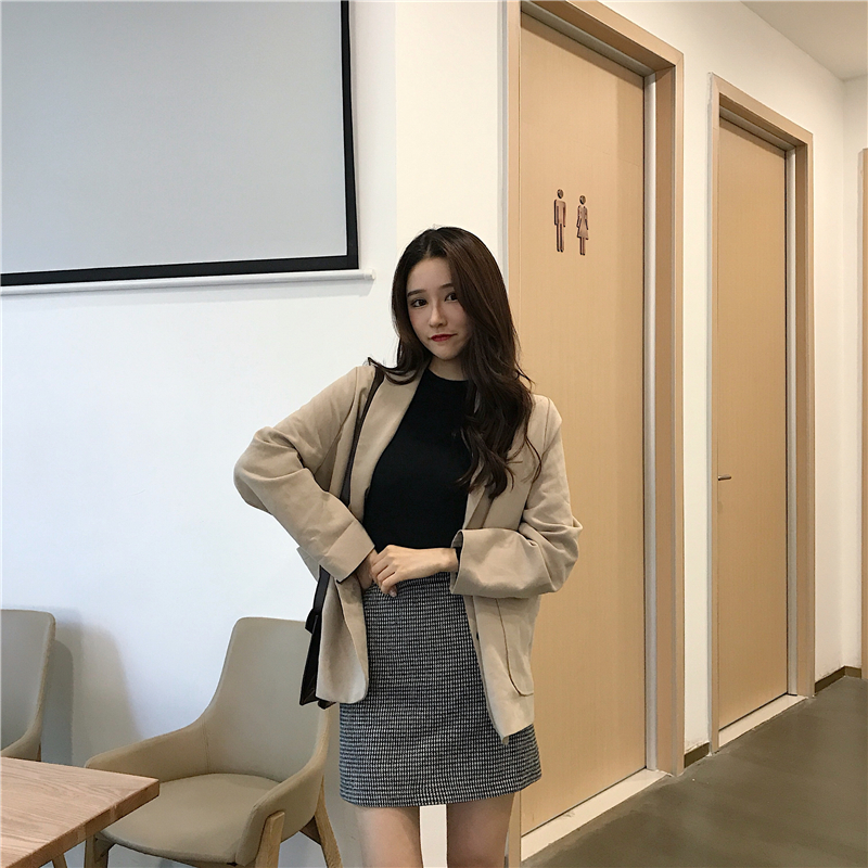 慵懶風秋裝女2018新款復古夾克牛仔外套女春秋+純色V領吊帶連衣裙