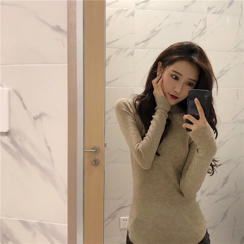 韓版針織衫女長袖秋冬2018新款韓版修身顯瘦百搭chic港味打底上衣