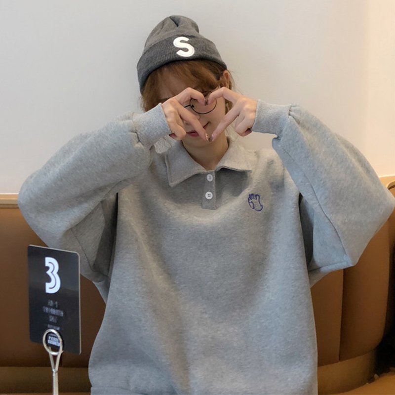 外套女2018新款秋冬韓版學院風寬松可愛卡通刺繡加厚加絨polo衛衣