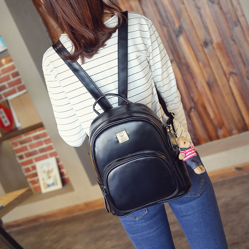 / 雙肩包女新款時尚韓版潮復古學院風背包小熊掛件休閑旅行包包
