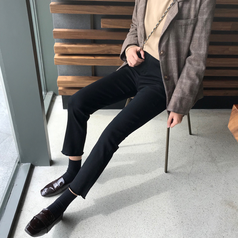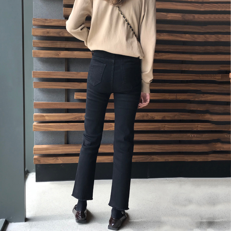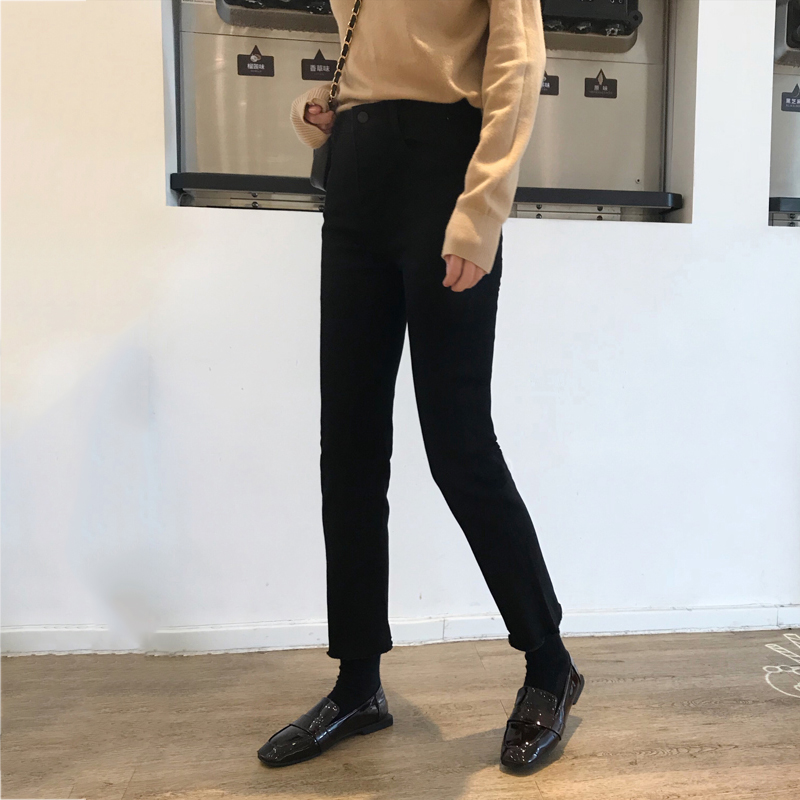 初戀褲女冬裝2018新款韓版款黑色高腰直筒牛仔褲學生寬松九分褲子