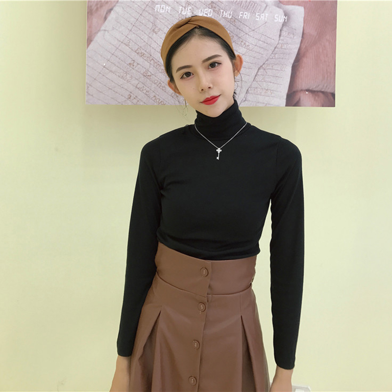 兩件套裝女秋新款高腰顯瘦單排扣PU皮半身裙子氣質修身長袖打底衫