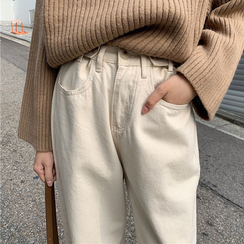 / 韓版純色高腰顯瘦復古牛仔褲女秋冬裝新款學生寬松初戀闊腿長褲子