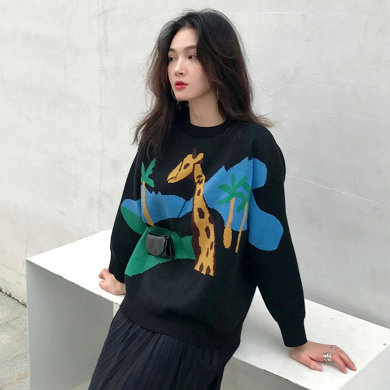 / 學生圓領寬松針織外套女秋冬裝新款韓版卡通慵懶毛衣時尚長袖上衣