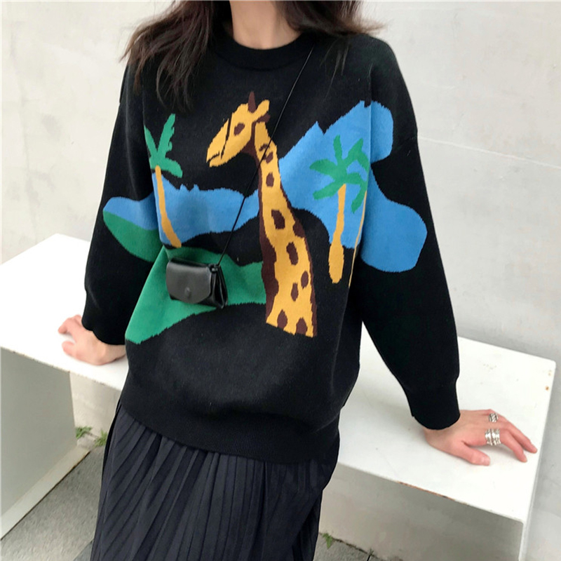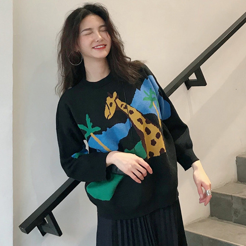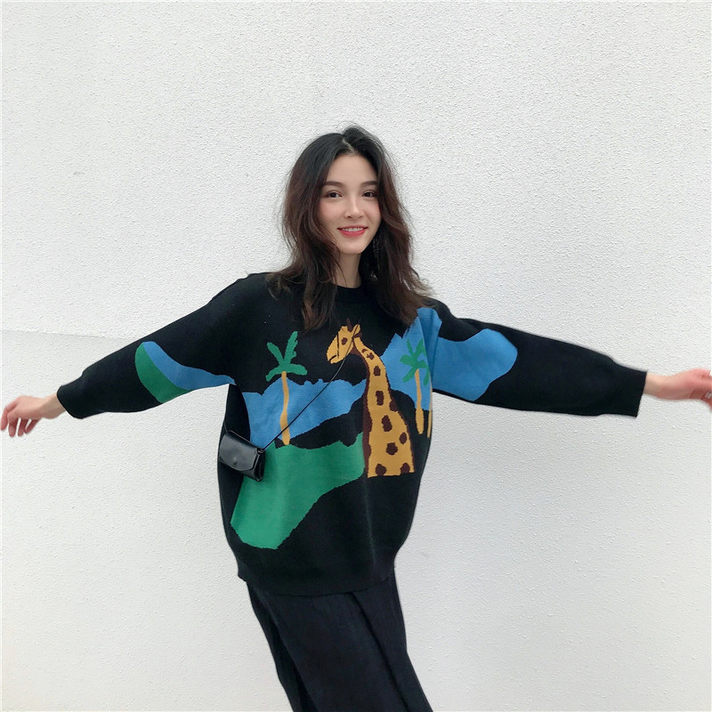學生圓領寬松針織外套女秋冬裝新款韓版卡通慵懶毛衣時尚長袖上衣