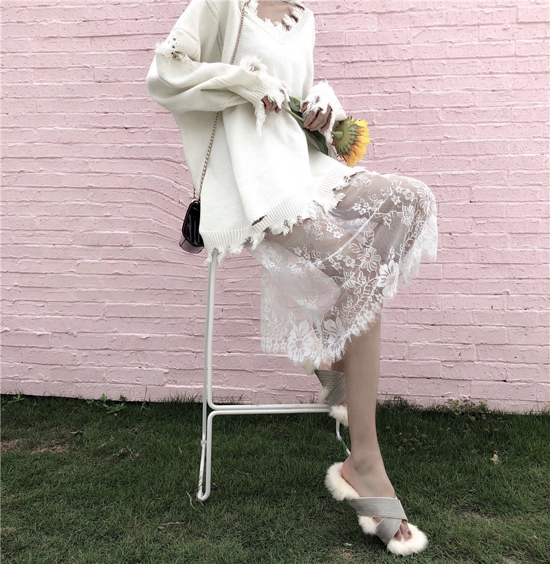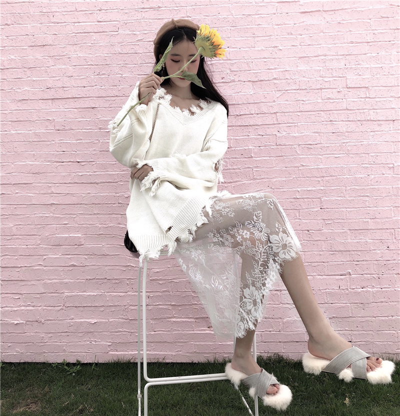 這個毛衣一定要搭配我們這期的蕾絲吊帶打底一起穿