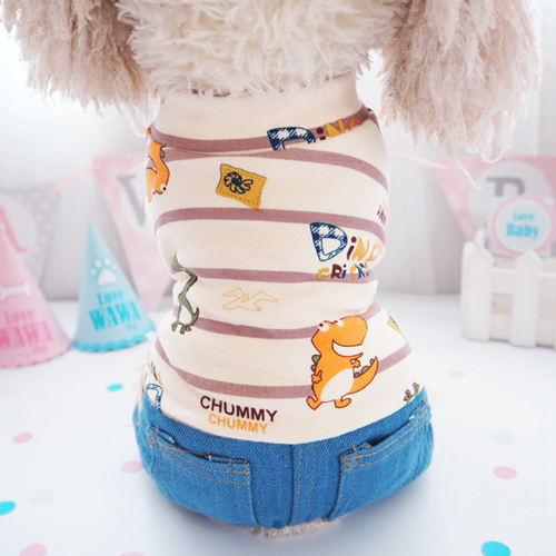 可愛恐龍牛仔寵物泰迪狗狗衣服秋冬款貴賓犬貓咪服裝四腳款