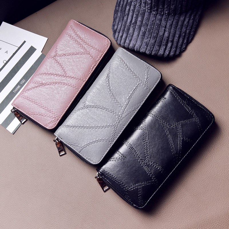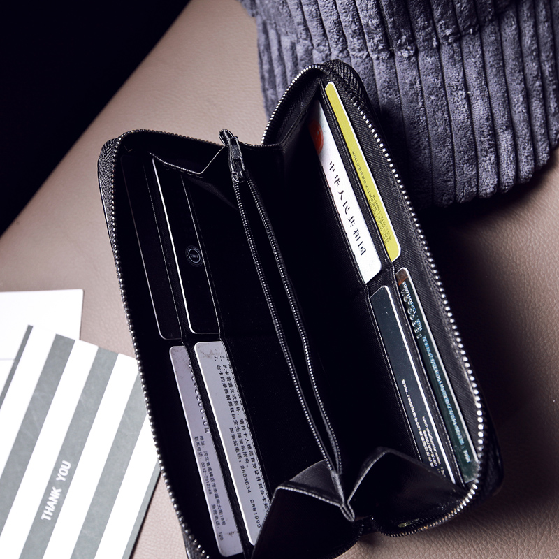 冬新款菱格女士錢包韓版長款拉鏈包男式手拿包手機包復古皮夾