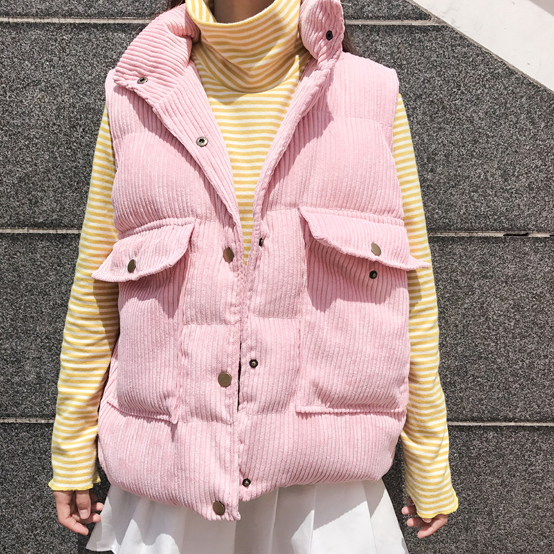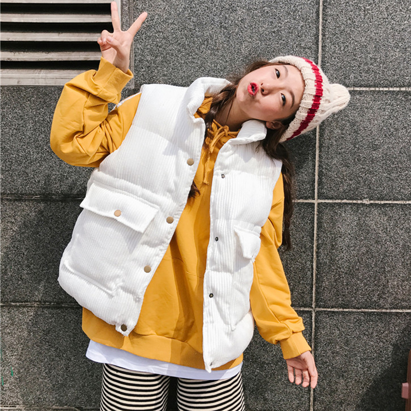 / 慵懶燈芯絨棉服秋裝女2018新款韓版寬松學生純色馬甲上衣簡約外套