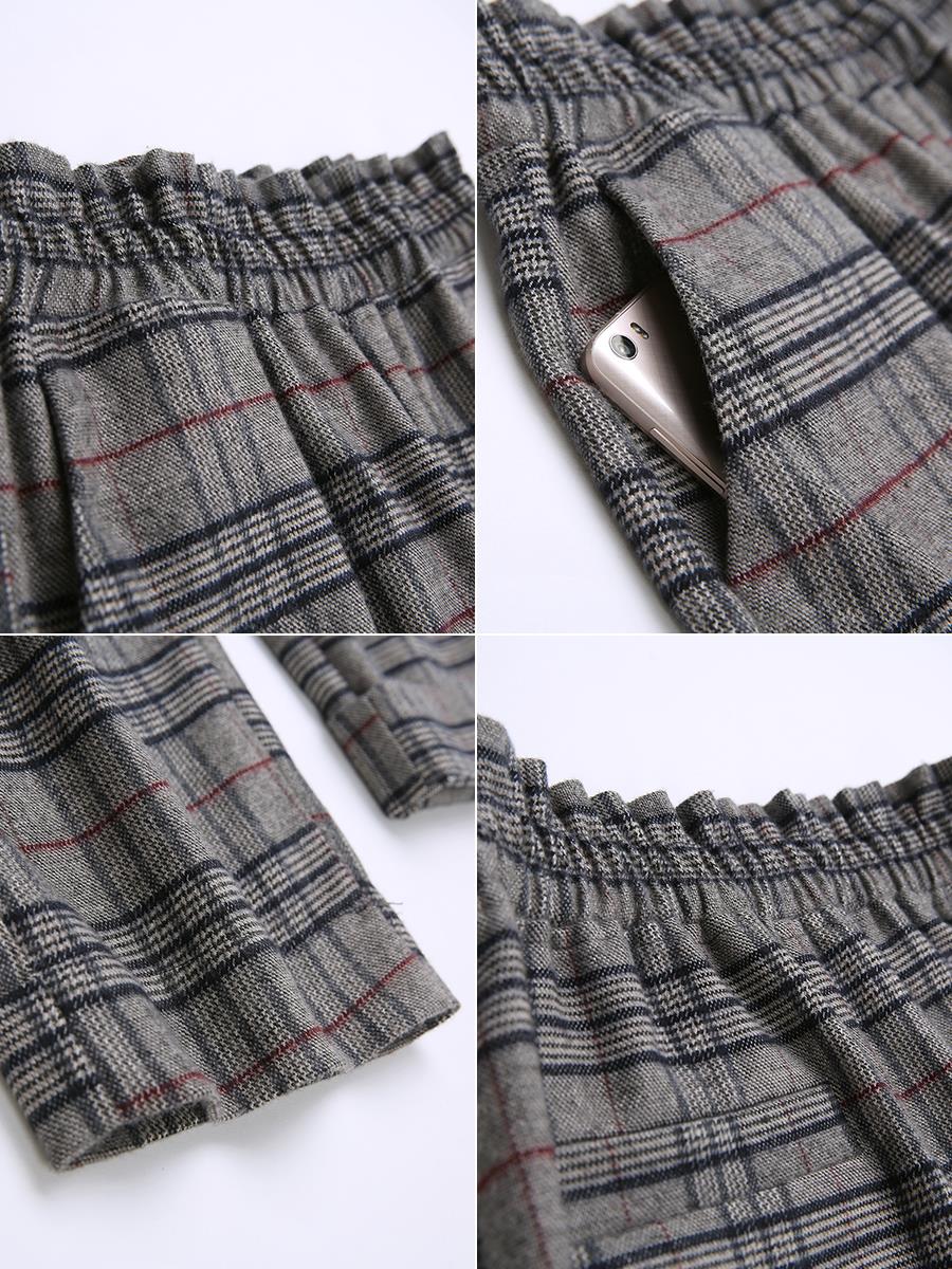 / MG小象格子高腰直筒褲女韓版寬松復古休閑褲冬季新款學生chic褲子