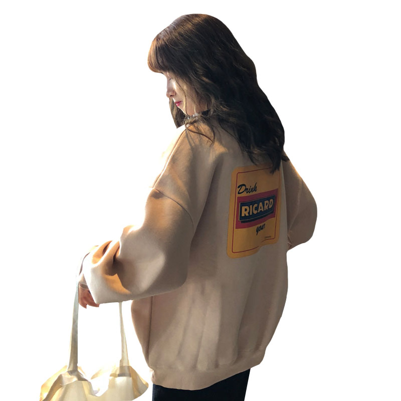 2018新款秋冬女裝韓版中長款原宿風字母加絨加厚寬松超火衛衣外套