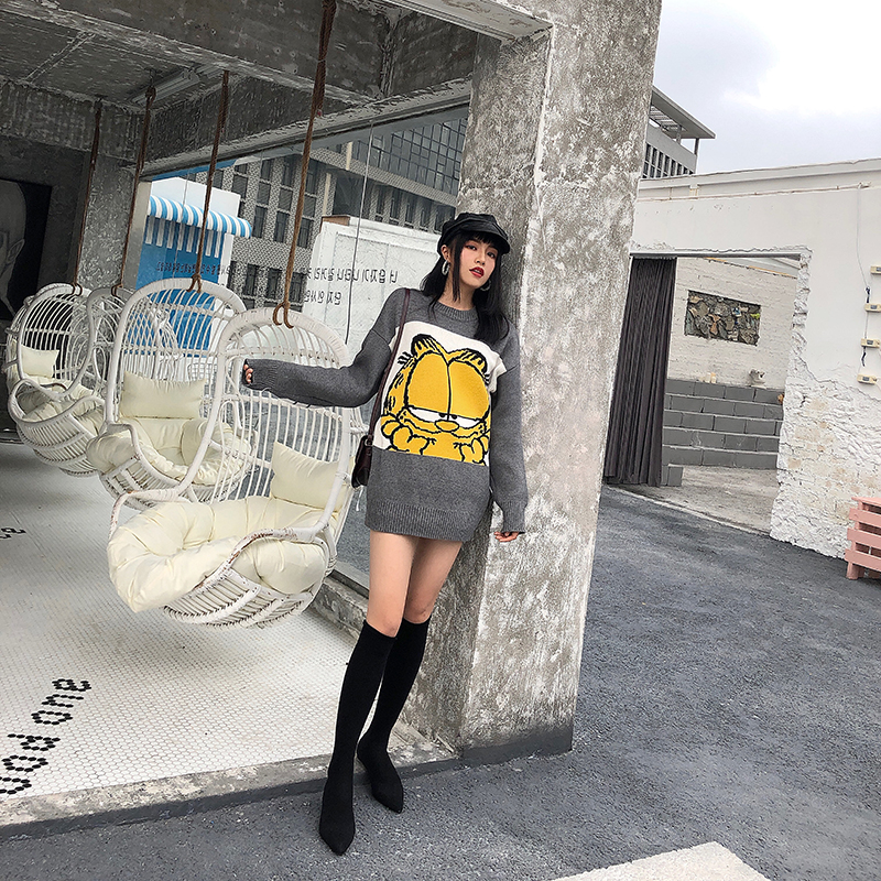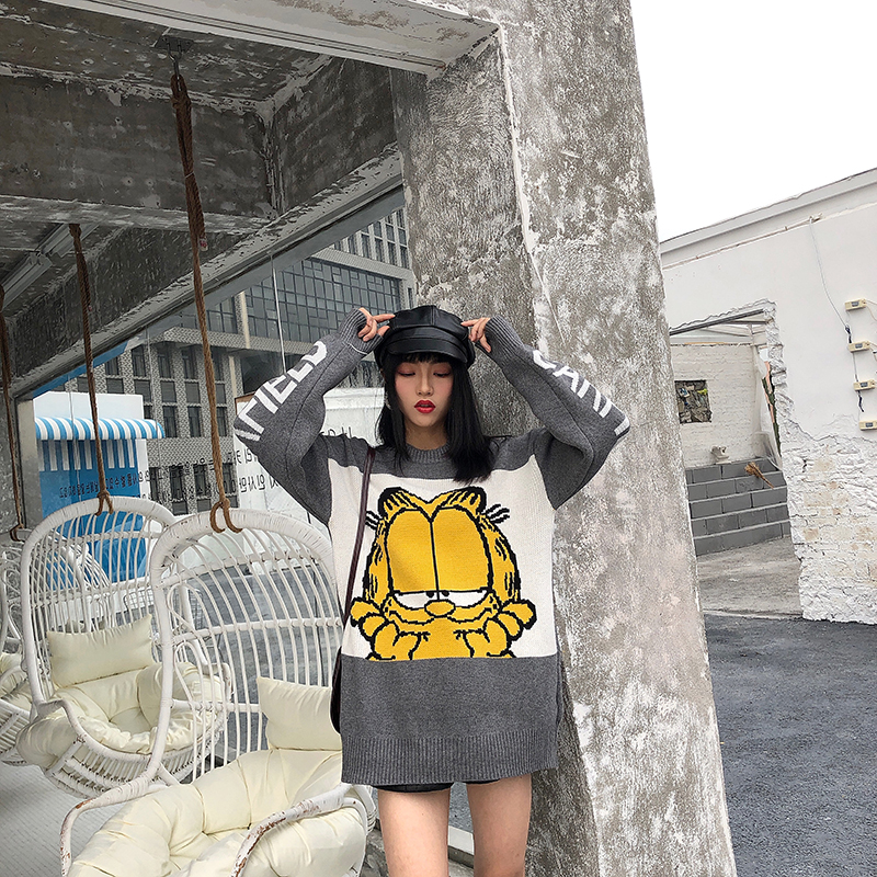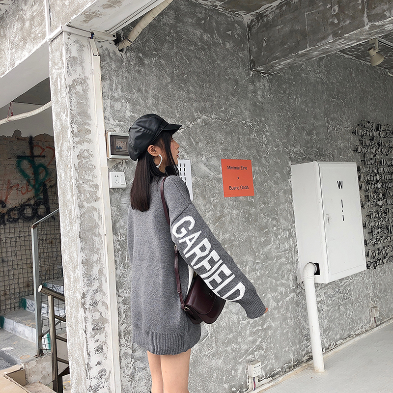 / 復古韓國chic風時尚卡通圖案字母寬松長袖套頭網紅毛衣女2018新款