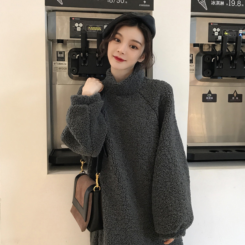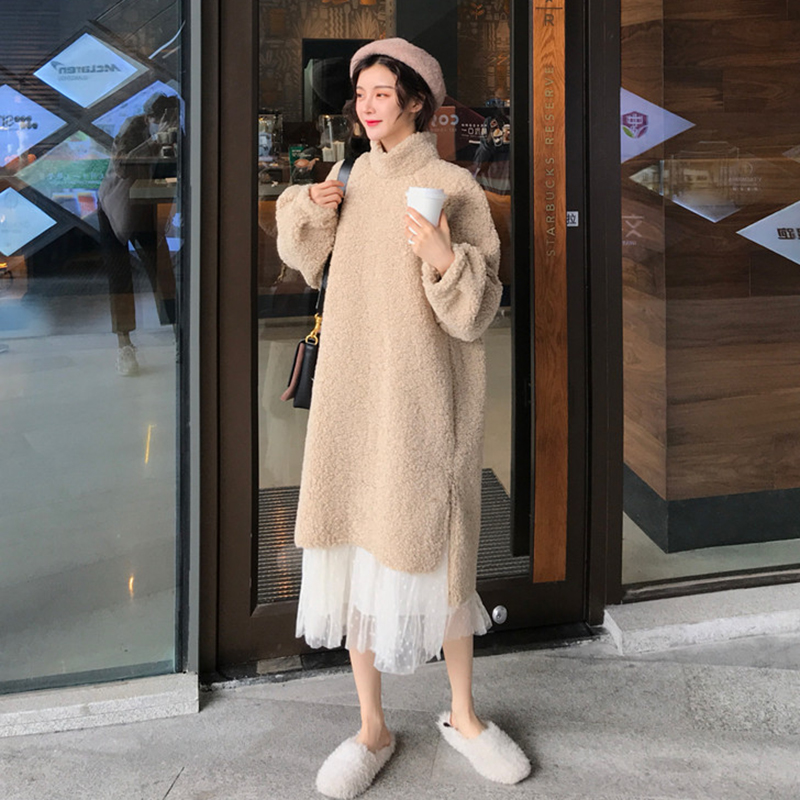 洋氣套裝女秋冬2018新款時尚氣質網紗裙寬松高領中長款開叉連衣裙