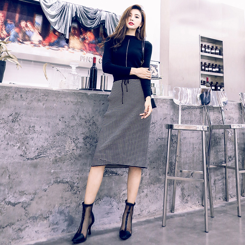 / 輕熟風女裝套裝長袖秋季針織2018新款秋裝毛衣套裝兩件套條紋裙子